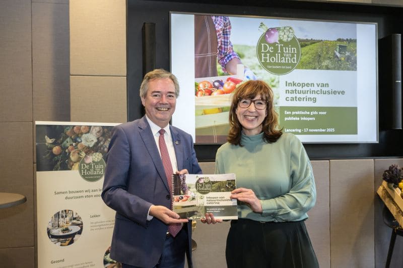 Gedeputeerde Meindert Stolk (Economie en Innovatie, Provincie Zuid-Holland) kreeg het eerste exemplaar uitgereikt. Hij benadrukte hoe groot de gezamenlijke inkoopkracht van publieke organisaties is, en hoe belangrijk het is die kracht te benutten voor lekker, gezond en duurzaam eten. Niet als een losse ambitie, maar als motor voor een robuust regionaal voedselsysteem waarin boeren perspectief hebben en ketens korter en eerlijker worden.